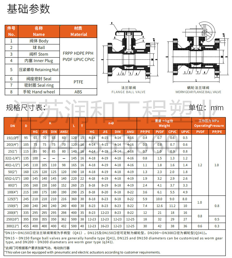1PPH塑料球阀安装前,应检查塑料球阀的规格、材质是否符合设计要求。